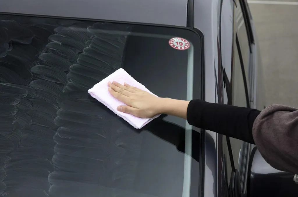 Wash off the residue with water. Wipe dry to reveal a crystal-clear, streak-free windshield instantly.
